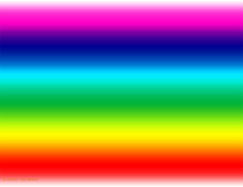 Le spectre des couleurs visibles (du violet au rouge) طيف الألوان المرئية بالعين البشرية (من الأحمر حتى البنفسجي) |
