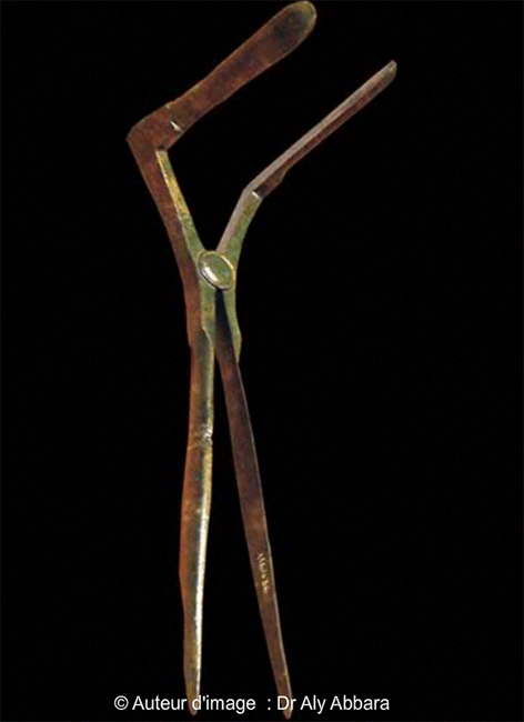 | Spéculum ani (ou speculum anal) Un modèle historique du Spéculum anal Il s'agit d'un spéculum anal divalve découvert à Pompéi et décrit par A, C, Celse au 1er siècle après Jésus Christ. A comparer au spéculum anal moderne (dilatateur rectal de Sims) |
