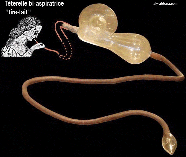 - Cet appareil se compose d'une cupule en verre possèdant une ouverture sous forme de ventouse applicable sur le sein, autour du mamelon. La cupule est reliée, au niveau de ses deux pôles, à deux tuyayx en caoutchouc, l'un plus long destiné à la mère, l'autre, à l'enfant.