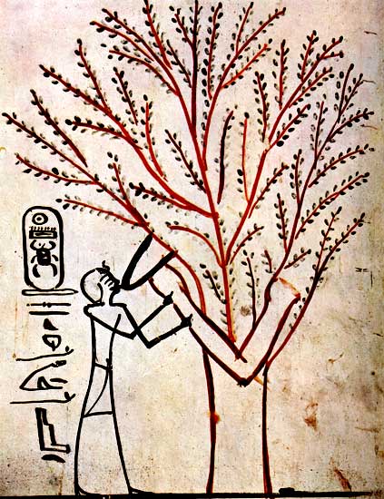 Le Pharaon Thoutmosis III nourri par le sein de l'arbre sacré (sycomore) Thèbes - Vallée des Rois - Tombe de Thoutmosis III (Min Kheper Râ)