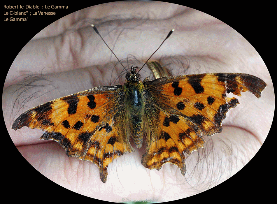 - Les noms acceptés de ce papillon, depuis Gérard Luquet 1986 sont : "Le Gamma" = le nom principal, puis "le Polygonia" ; "le C blanc" ; "le C-blanc" ; "le Robert-le-Diable" et "la Vanesse Gamma".