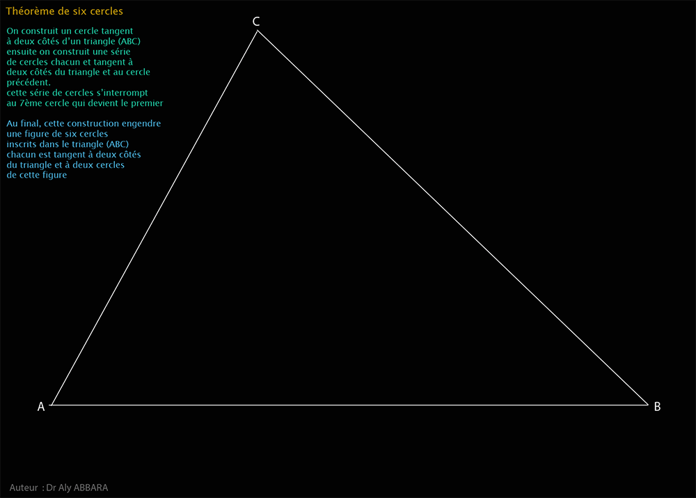 On construit un cercle tangent à deux côtés d'u triangle (ABC), ensuite on construit une série de cercles chacun est tangent à deux côtés du triangle et au cercle précédent. Cette série de cercles inscrits dans le triangle (ABC) s'interrompt au 7ème cercle qui devient le premier.