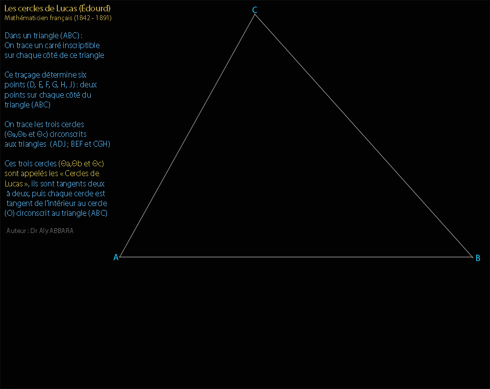 - Ces trois cercles (Θa,Θb et Θc) sont appelés les « Cercles de Lucas », ils sont tangents deux à deux, puis chaque cercle est