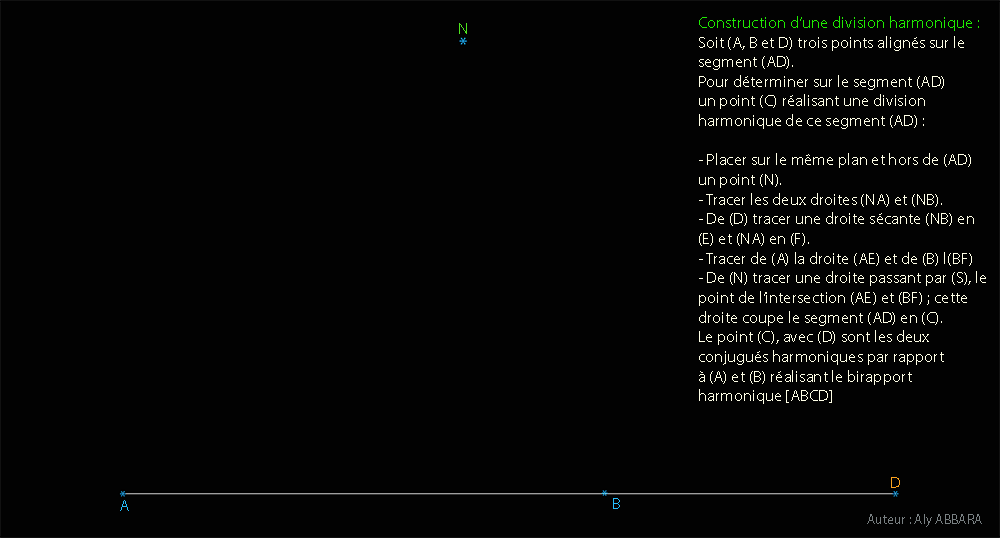 [(AD/AS) / (BD/BS) = -1] ⇒ le Birapport [A, B, S, D] = (-1) ⇒ cette division forme une division harmonique et (D et S) sont les conjugués harmoniques par rapport à (A et B).