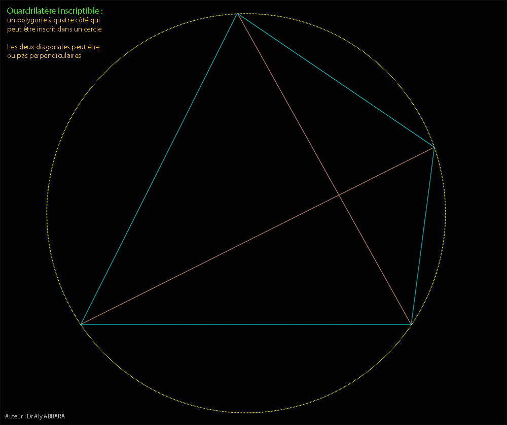 * - Un polygone à quatre côtés inscriptible dans un cercle. Les deux diagonales peuvent être ou non orthodiagonles (perpendiculaires) l'une sur l'autre.
