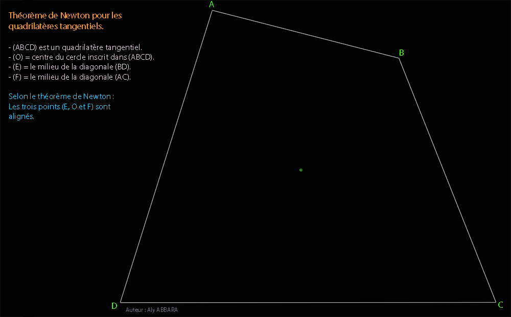 Théorème de Newton pour un quadrilatère (ABCD) tangentiel :