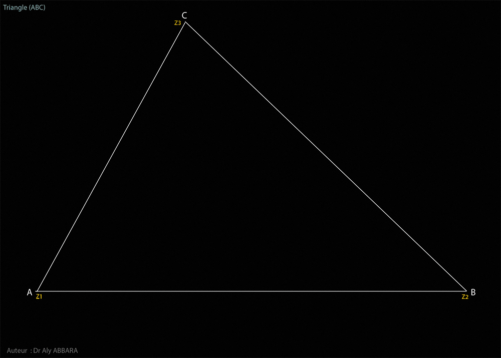 Avec la même technique on peut construire une deuxième antiparallèle (Q3-Q4) au côté (AB) du triangle (ABC).