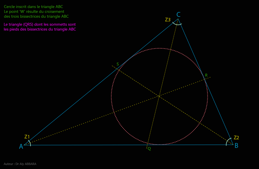 Les bissectrices du triangle (ABC) dont leur point de concours est le centre du cercle inscrit dans ce triangle