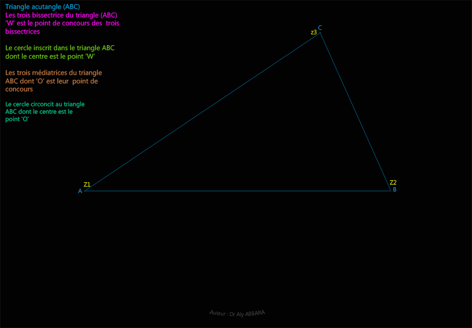 Les bissectrices du triangle (ABC) dont leur point de concours est le centre du cercle inscrit dans ce triangle