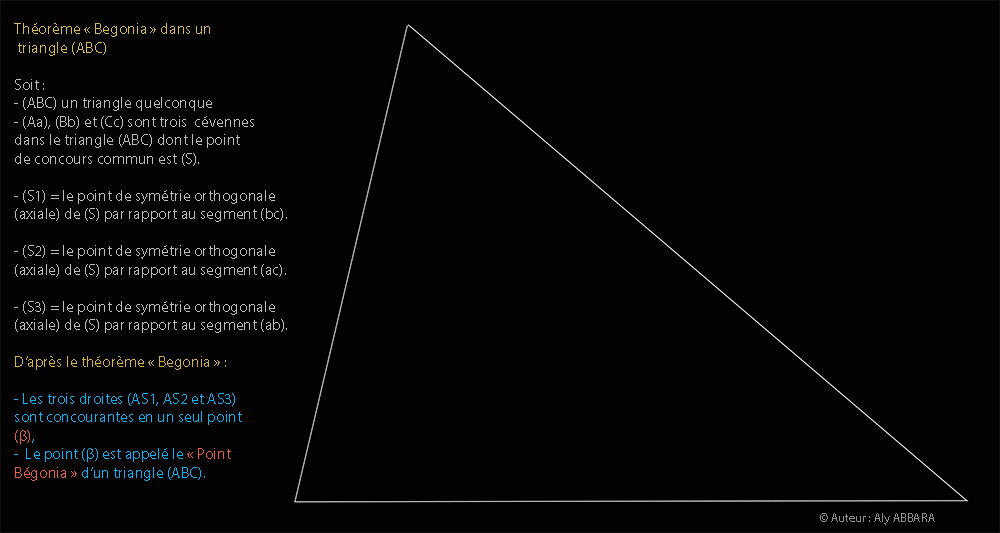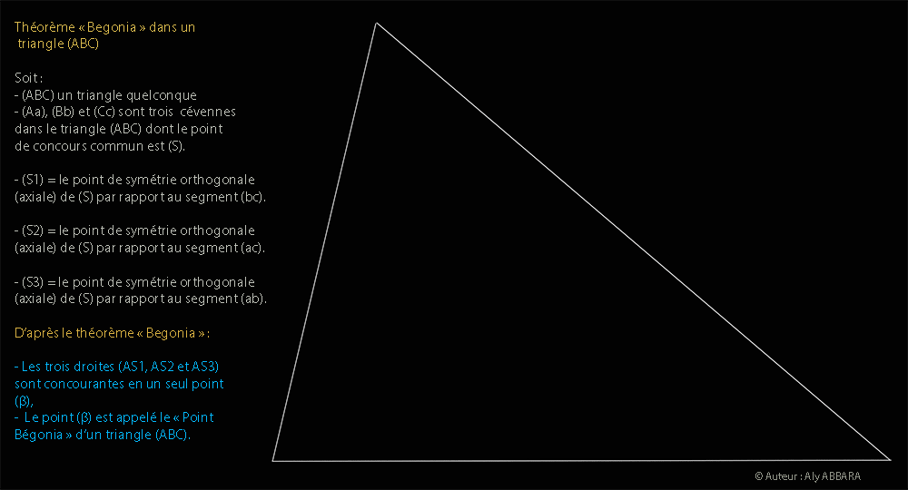 - Le point (β) est appelé le « Point Bégonia » d’un triangle (ABC).