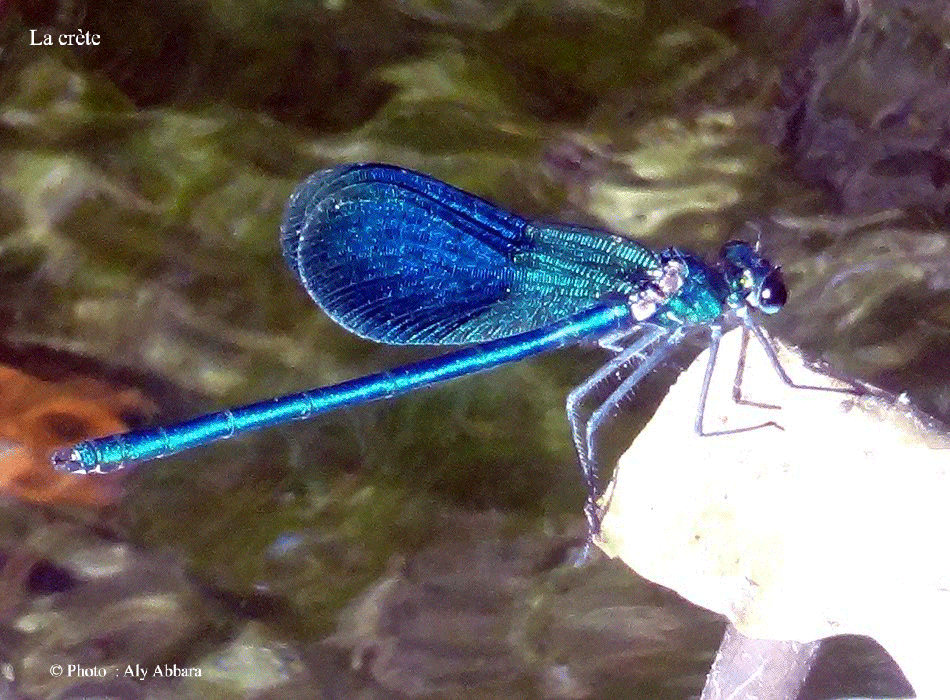 La famille des Calopterygidae : insectes nommées Caloptéryx (ou encore des Agrions) ; leurs corps et ailes à reflets métalliques ; ailes larges et de couleur sombre chez les mâles.