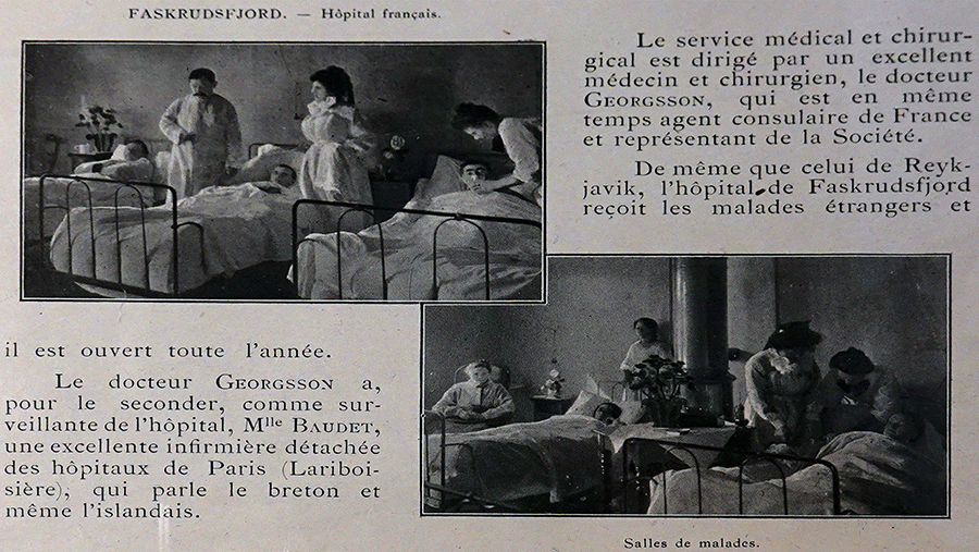 - En 1897 une Infirmerie fut érigée à Fáskrúðsfjörður par la Société des Œuvres de Mer, Organisme caritatif qui, de nos jours encore, se consacre à l'assistance des marins français loin de leur pays.