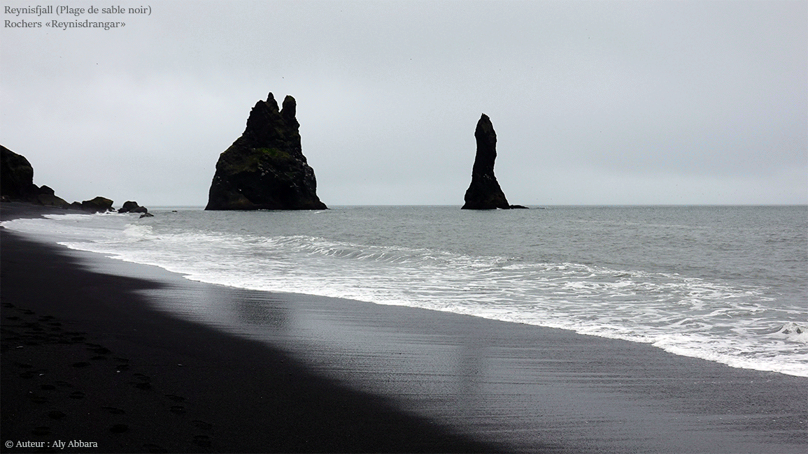 Ce sont des piliers rocheux basaltiques émergeant de l'Océan Atlantique Nord près de la proximité occidentale de la plage de sable noir « Reynisfjara ».