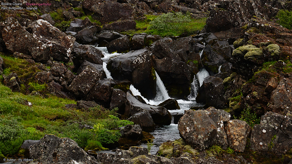 - Dans la section méridionale (sud) d'« Almannagjá », la rivière « Öxará » se croise avec la bordure occidentale de la faille et forme une chute nommée « 'Öxarárfoss » qui se déverse dans le fond de la faille afin que ce derier devint son lit sur environ 500 mètres, puis elle sort vers la plaine qui se trouve à l'est d'« Almannagjá ».