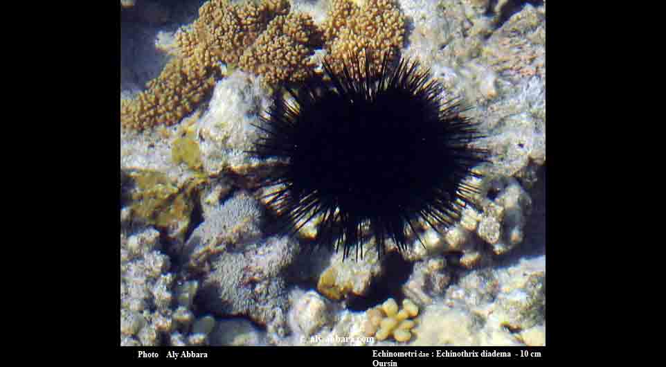 Oursin Diadème : Mer Rouge ; taille 30 cm ; profondeur de 0.5 à 8 m
