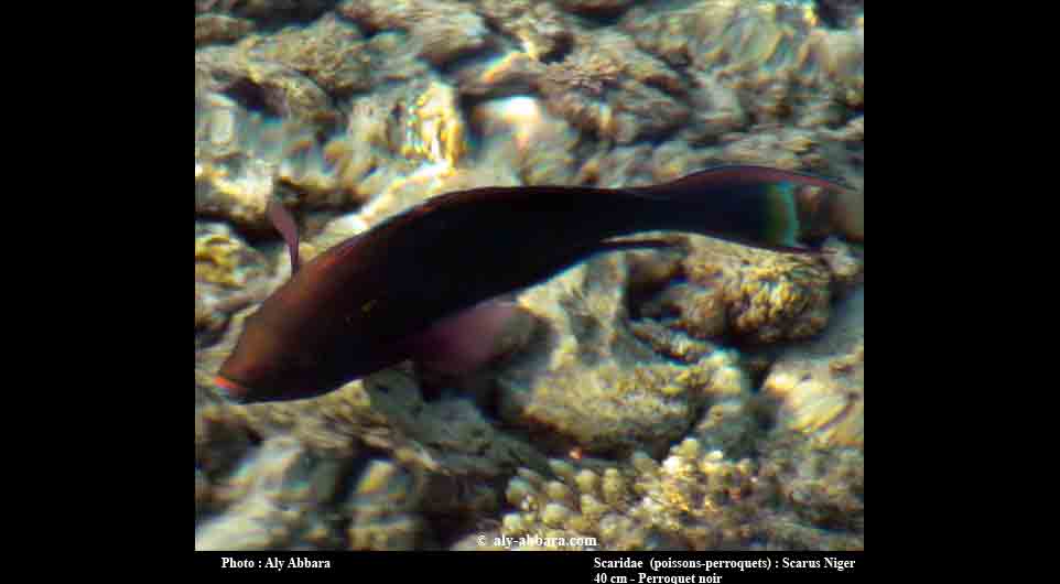 (perroquet Noir) : lieu de vie, Mer Rouge, dans les récifs coralliens à une profondeur de 1 à 30 mètres.