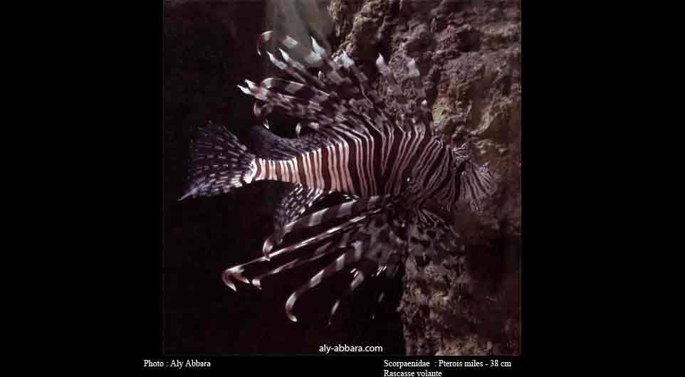Rascasse volante Africaine (Pterois mombasae) : taille 18,5 cm ; Mer Rouge et Mer d'Arabie ; à 20 m de profondeur. Rascasse volante Commune (Pterois Volitans) : taille 40 cm ; Mer Rouge et Mer d'Arabie ; à 2-20 m de profondeur.