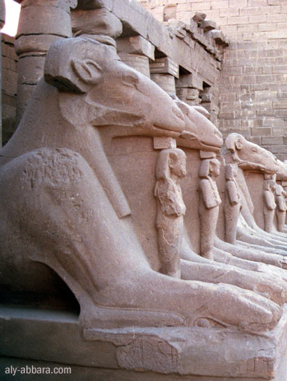 Les sphinx portrent la tête de bélier (sphinx criocéphale),