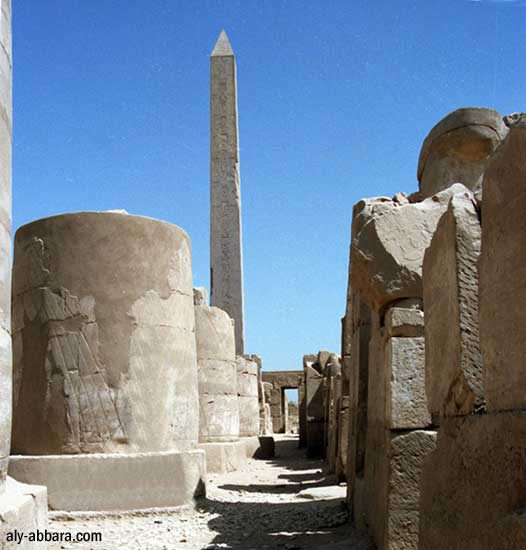 - Luxor - Au temple de Karnak : l'un des deux obélisques de la reine