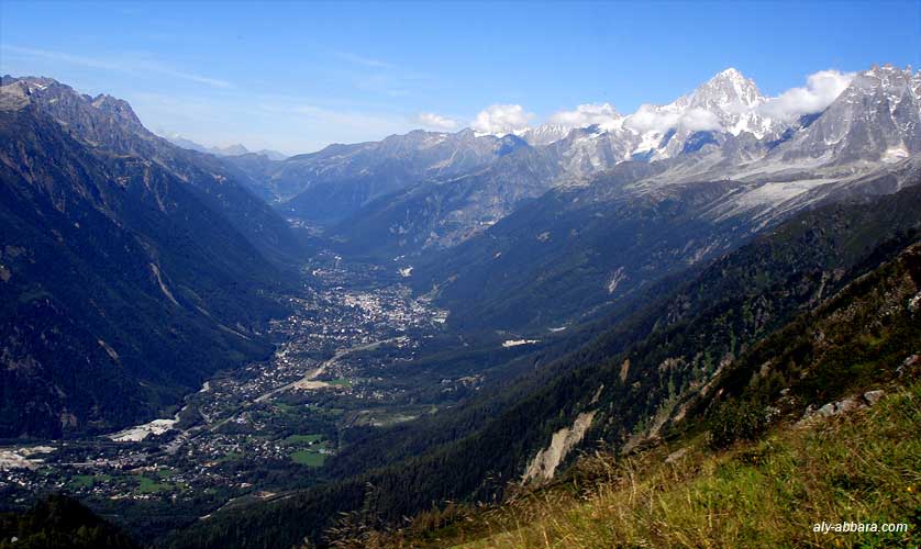 : la vallée de l'Avre et la ville de Chamonix-Mont-Blanc dominée