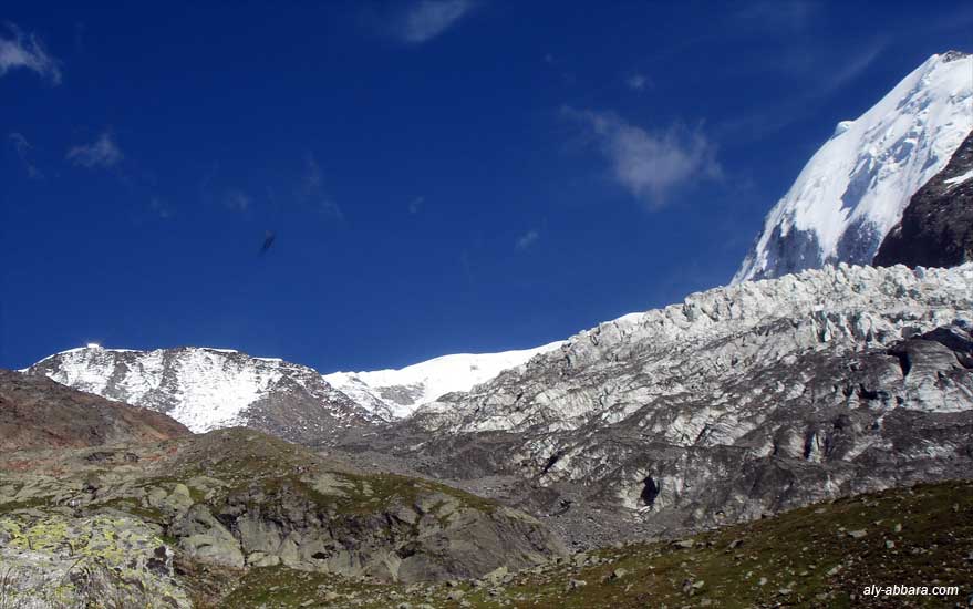 : le Glacier de Bionnassay, l'Aiguille du Goûter, le refuge du Goûter,