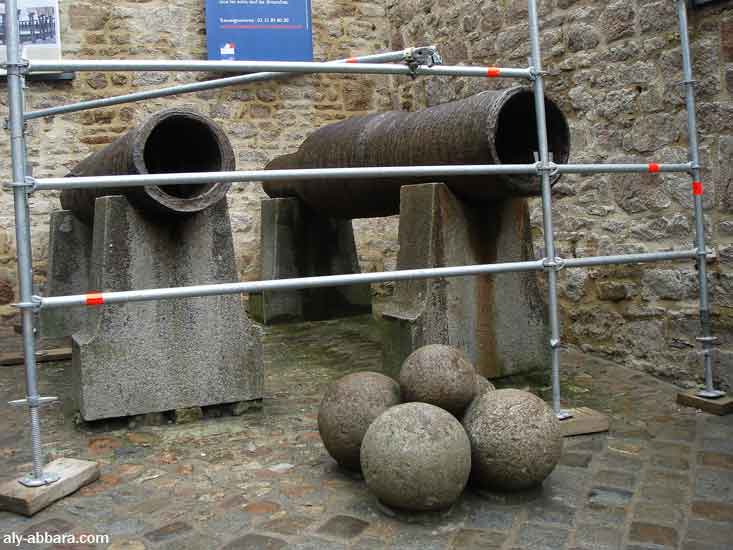 Deux bombardes anglaises de 380 - 420 de calibre, abandonnées sur la grève au cours de la guerre de cent ans, par l'armée de Thomas SOALLES le 17 juin 1434, après sa défaite contre les Montois.
