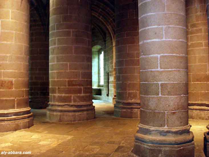 - Elle se situe au même niveau que le 2e étage de la Merveille ; elle supporte le chœur gothique de l'église abbatiale.