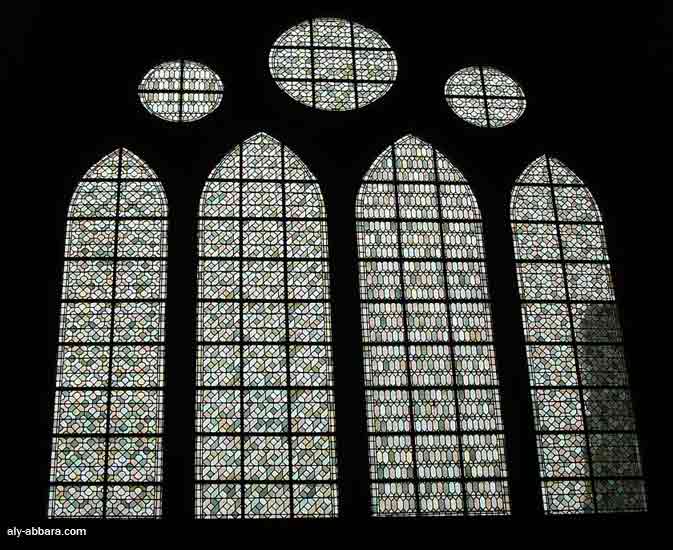 - Sur cette image on peut apprécier le raffinement des vitraux à formes géométriques d'une chapelle latérale.