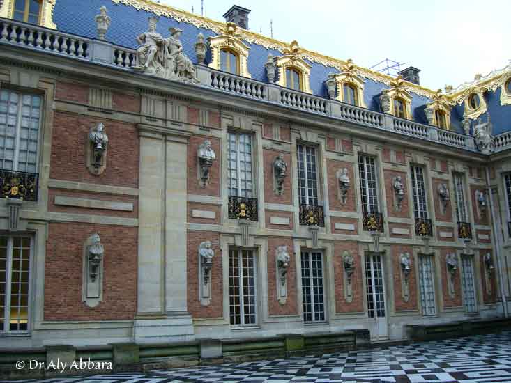 - On identifie sur cette image de l'aile gauche du Château de Versailles bordant la cour de Marbre :