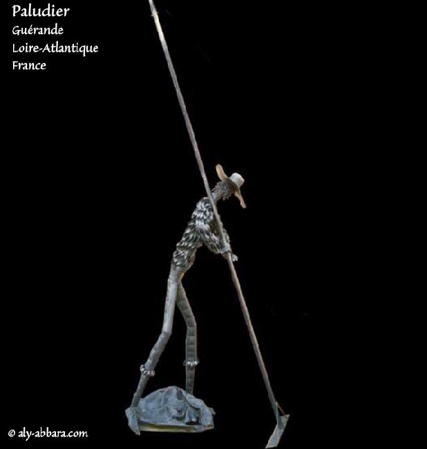 Paludier ramassant le sel avec son las Statue exposée devant un magasin de souvenirs, dans la vieille ville de Guérande Guérande - Loire Atlantique - France Auteur : Dr Aly Abbara