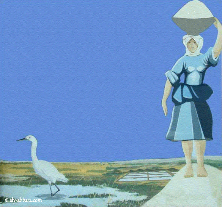 Porteresse dans les marais salants Portnichet - Loire Atlantique - France Peinture extraite d'un dessin recouvrant la vitrine d'un magasin situé sur la place du marché de Portnichet, puis modifié par Dr Aly Abbara