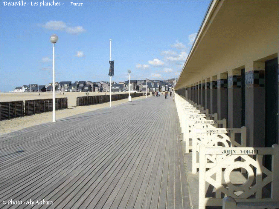 | La plage de Deauville-sur-Mer - Les planches La Normandie - France Les planches de Deauville : la célèbre promenade sur la plage, construite en 1923, Les planches s'étendent sur 643 mètres. Auteur de l'image (autodiaporama) : Dr Aly Abbara Avril - 2006, en début de la matinée Mise à jour : 30 Janvier, 2021 museum.aly-abbara.com |