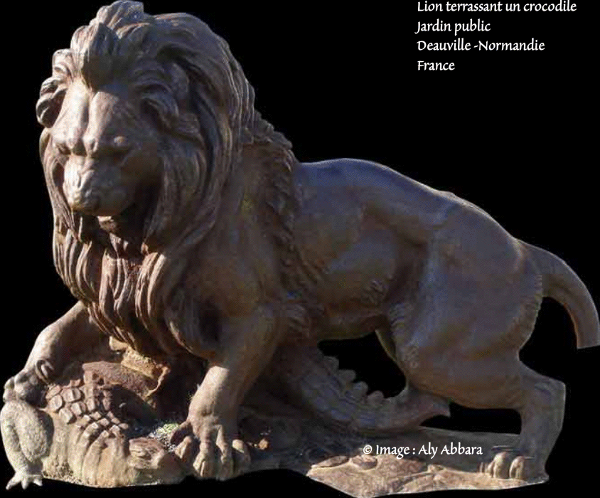 | Lion terrassant un crocodile Sculpture exposée dans le jardin public parallèle aux Planches de la plage de Deauville Deauville - Normandie - France (artiste à identifier ?) Auteur de l'image : Dr Aly Abbara - avril - 2006 Mise à jour : 30 Janvier, 2021 museum.aly-abbara.com |