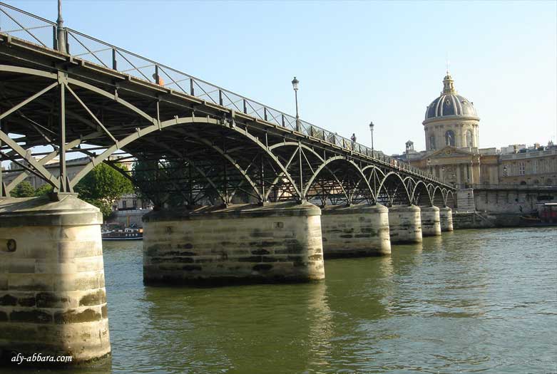 Le pont des Arts sur la Seine puis le Palais de l'Institut de France