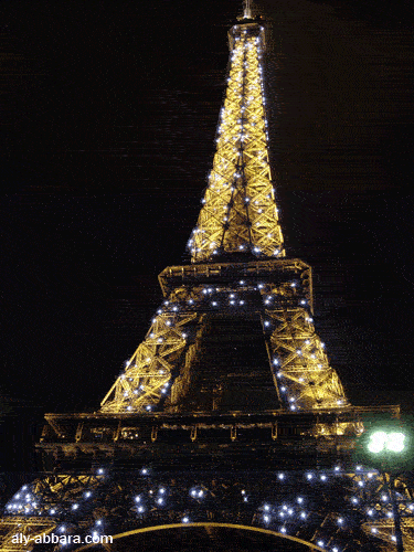majestueuse Tour Eiffel illuminée et scintillant pendant quelques minutes toutes les heures .