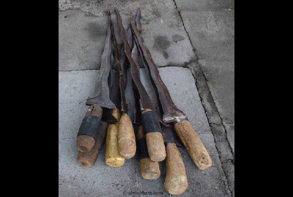 Les disciples du Barong avec les "Kris", c'est-à-dire les poignards magiques, retournés contre eux-même par Rangda, la Reine des sorcières de Bali