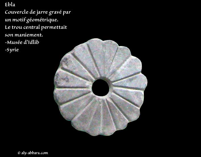 Couvercle de jarre à motifs géométriques ; le trou central permettait son maniement