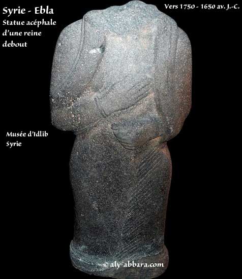 Statue acéphale en basalte d'une reine d'Ebla debout (orthostate)
