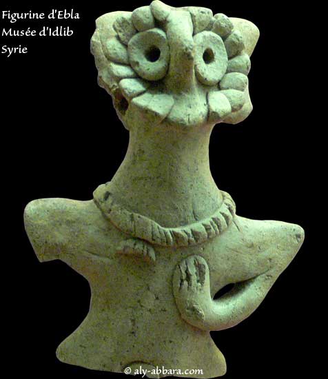 Syrie - Ebla (l'actuel Tell Mardikh) Figurines féminines d'Ebla La femme est représentée souvent tenant par les mains ses seins, avec la mise