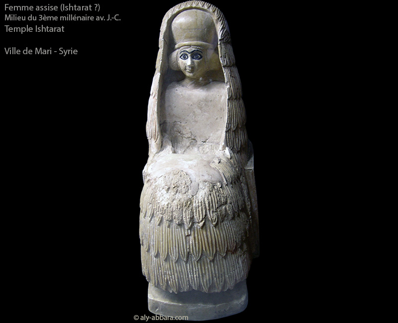 Cette œuvre date du Milieu du 3ème millénaire av. J.-C. (Gypse - 36 cm), il a étédécouverte en 1952 au temple Ishtarat - Ville de Mari - Syrie.