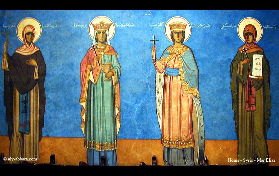 Sainte-Paraskifi (القديسة باراسكيفي) ; Sainte-Cathérine (القديسة كاترينا) ; Sainte-Barbare (القديسة برباره) ; Sainte-Makréne (القديسة مكرينا)