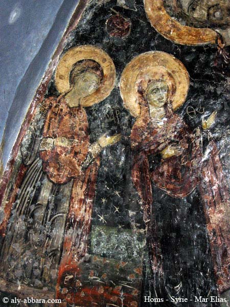 Le martyrium avec ses fresques murales datant de XIe siècle représentant la Vierge Marie (العذراء مريم) Et la