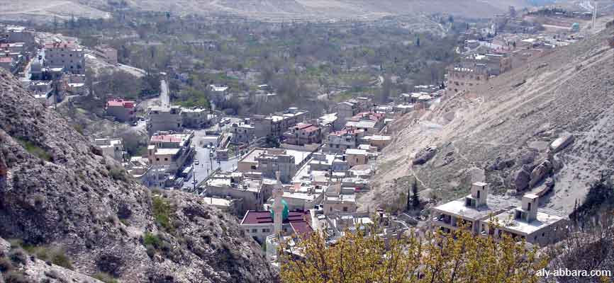 • Village syrien de 5000 habitants, au Nord-Ouest de Damas - دمشق - et à 42 km de cette ville (ou à 53 km en passant par Saidnaya -صيدنايا -), dans la région montagneuse de Qalamoun - جبال القلمون - qui fait partie de la chaîne de l'Anti-Liban - جبال لبنان الشرقية . Il est à 1650 mètres d'altitude.