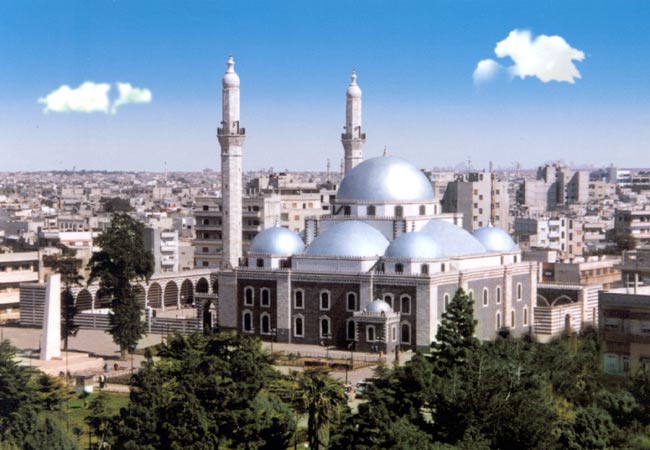 - Sous le règne du Sultan Ottoman 'Abd al-Hamid II (السلطان عبد الحميد الثاني), le gouverneur de la Syrie (والي الشام) Hussein Nazim Bacha (حسين ناظم باشا ـ 1895 ـ 1909), donna l'ordre de détruire l'ancienne mosquée afin d'édifier une nouvelle mosquée incluant le mausolée de Khalid Ibn al-Walid ; la construction de cette mosquée s'acheva en 1912 (1331 Hégire). Il s'agit de la mosquée actuelle, elle est construite selon le style architectural ottoman, caractérisé par l'édification de deux minarets fines et hautes, une immense coupole centrale entourée par neuf coupoles plus petites.