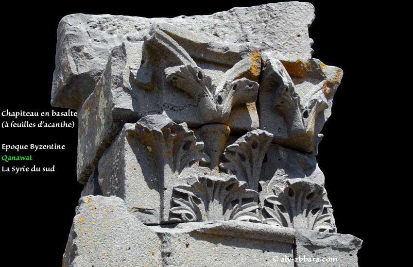 Chapiteau d'une colonne à coupe carrée, orné par des motifs floraux (feuilles d'acanthe)