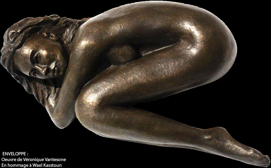 Sculpture de Véronique Vantesone en bronze, en hommage au sculpteur syrien, Waël Kastoun (وائل قسطون), chrétien originaire de la localité de Marmarita dans la province de Homs, mort sous la torture dans un des enfers de la Syrie moderne.
