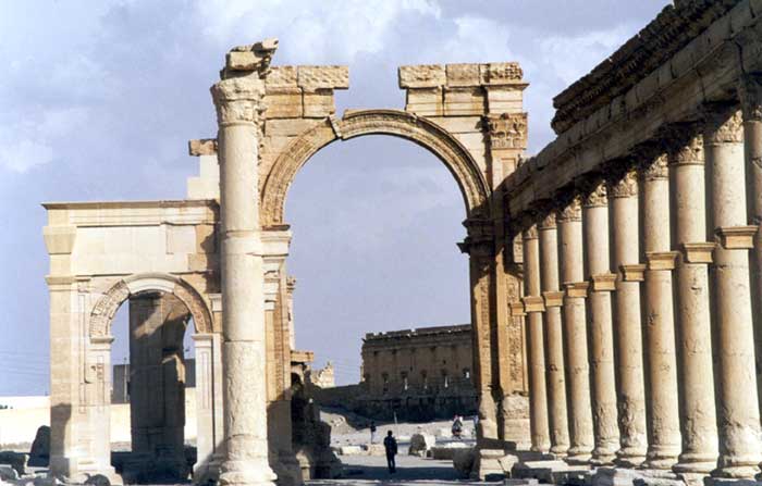 Les ruines de la ville de Palmyre - l'Arc de triomphe et le cardo aux colonnades